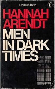 My own thoughts nowadays turn–surprise, surprise–to Hannah Arendt. She has this to say in her unforgettable 1968 book, Men in Dark Times: