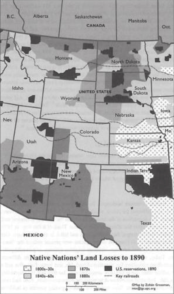 The discussion on the expropriation of Indigenous land in the name of agricultural and capital progress brought me to Winona LaDuke’s All Our Relations: Native Struggles for Land and Life . In a chapter titled Buffalo Nations, Buffalo Peoples, LaDuke connects the military policy of buffalo killing, land grabbing, and the expansion of cattle and beef industries as the key policies of colonizing the plains. She explains that to clear Indigenous people from the rich agricultural land in the prairies, hunters killed the buffalo and “thereby destroyed the major food source for the Native people of the prairie – and then set upon the land. Feeding those whom the government had deprived of food and sustenance became a major business and a new commercial opportunity for the fledgling western cattle industries” (142).